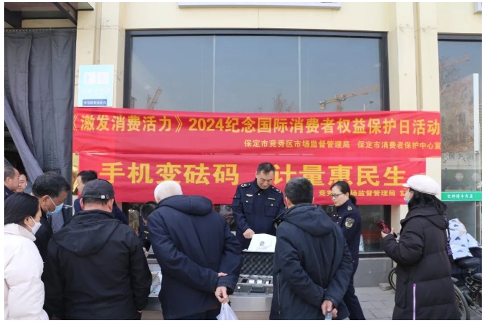 3.15国际消费者权益日来临之际,保定市市场监督管理局会同竞秀区局对五一九集贸市场、美廉好超市在用电子计价秤进行检定,同时开展“手机变砝码”活动及计量法律法规宣传。此次活动特别邀请社会监督员深度参与检定工作,以“我当计量员”的角度对检定工作进行现场观摩,了解计量检定以及计量准确对民生权益保护的重要意义。