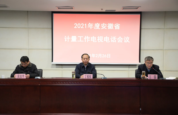 2月26日,2021年全省计量工作电视电话会议在合肥召开。省市场监管局党组成员、副局长丁祖权出席会议并作重要讲话,省局计量处主要负责同志作了全省计量工作报告,省局计量处全体人员、省计量院领导班子成员及各部门主要负责人、省质量技术协会秘书长约30余人在主会场参加会议。各市局分管负责人、计量科(处)全体人员、各市计量技术机构领导班子成员在各分会场参加会议。