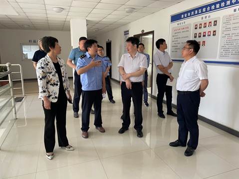 近日,江苏省市场监督管理局一级巡视员冯新南、计量处副处长潘俊荣等领导一行莅临洪泽调研检验检测工作。淮安市市场监督管理局局长徐亚平、副局长王松,洪泽区政府副区长韩学红、洪泽区市场监督管理局局长高红等领导陪同。