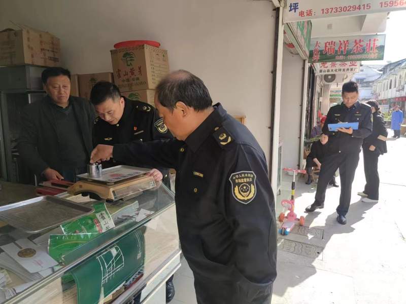 此次共出动技术人员8人次,服务经营户98家,检定计量器具227台。通过此次计量器具检定服务,有效解决了因电子计价秤称量不准导致缺斤短两的问题,保障了消费者的合法权益,护航“霍山黄芽”春茶上市。