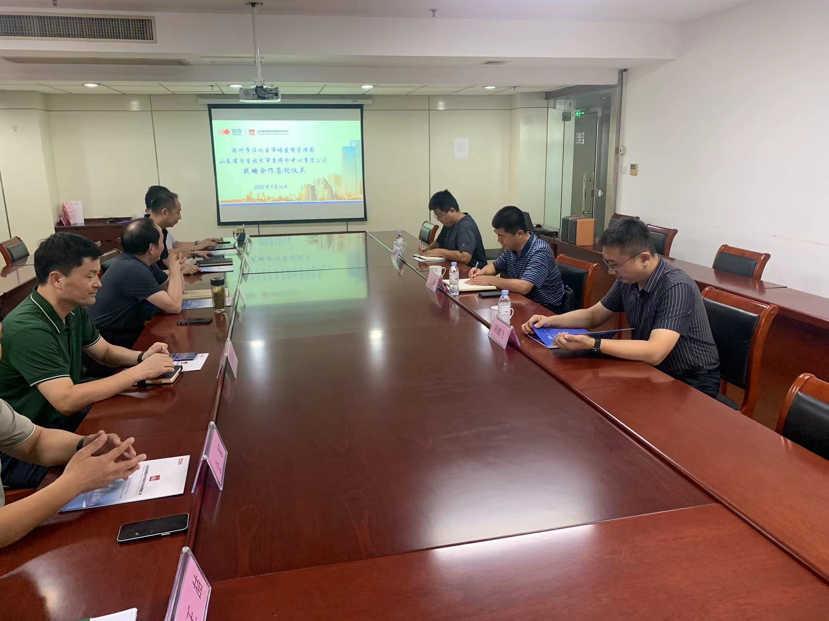 审评公司事业发展中心副主任徐自壹与沾化区计量测试检定所所长朱伟代表双方签署了战略合作协议。本次战略合作协议的签署,是双方合作中新的里程碑,为强化审评公司与县区局合作,助推区域高质量发展探索了一条新的发展之路。