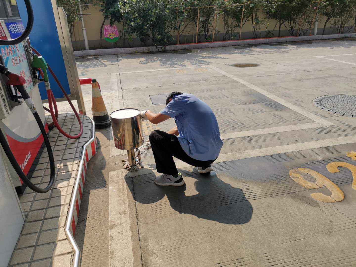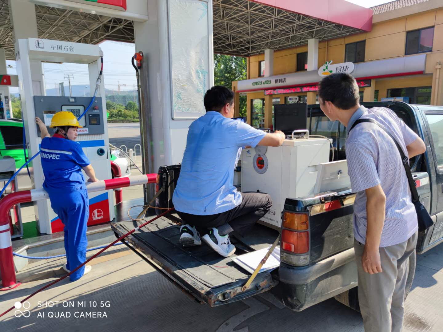 持续的高温工作,检定人员汗流浃背,衣服不一会就湿透了,即便如此,他们没有一刻休息,马不停蹄的赶往一个又一个加油站、加气站去检查。