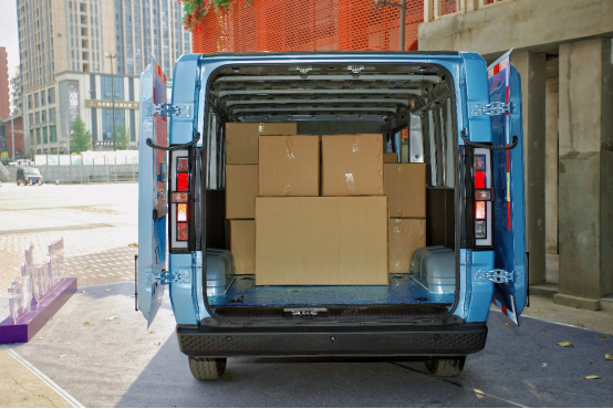 鑫源E3采用大开合角度、多开合方式的车门设计,更适应日常配送场景,极大提升了装卸效率。尾门采用270°对开,开启面积更大,满足叉车上下大件货物的需求,省力更高效。侧滑门最大开启尺寸870mm,有效开启面积 1.275m²,这样从侧面上下货也很便捷,在狭窄区域也能轻松操作。同时,车轮毂包采用方形设计,1230mm间距让木工板等常见货物,实现平放;在货厢顶部和底部还配备了5个天钩和8个地钩,便于在运输货物时固定货物,也利于用户各种装载DIY,得益于超大空间与功能拓展灵活性,鑫源E3能根据实际用车需求进行组合、变换或改造,可变成各种移动售卖车、露营房车等,充分满足物流商用车市场、个体私营用户、专用车等细分领域更多用车场景需求。