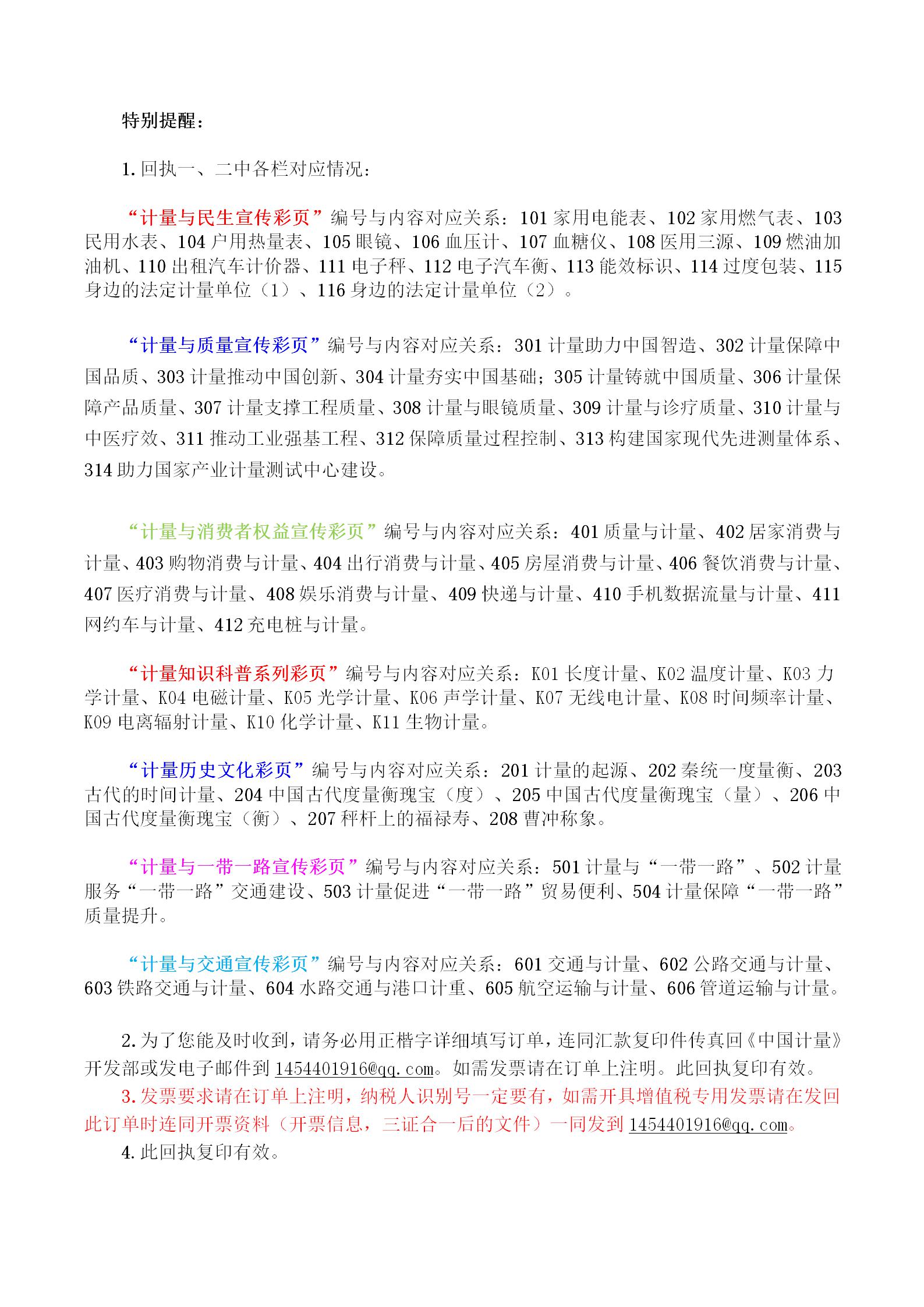 彩页内容分别为:计量助力中国智造、计量保障中国品质、计量推动中国创新、计量夯实中国基础;计量铸就中国质量、计量保障产品质量、计量支撑工程质量、计量与眼镜质量、计量与诊疗质量、计量与中医疗效、推动工业强基工程、保障质量过程控制、构建国家现代先进测量体系、助力国家产业计量测试中心建设。