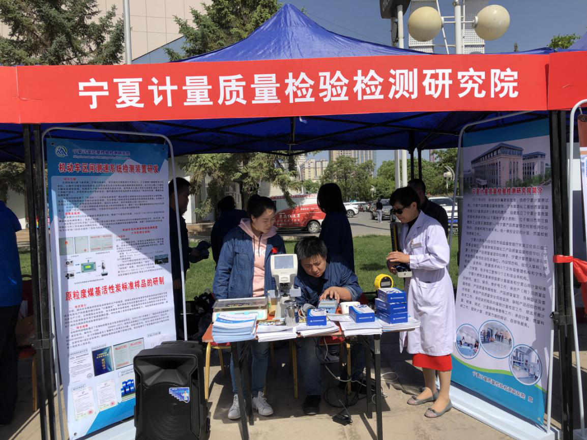 5月19日,宁夏计质院工作人员现场检定和宣传计量质量知识
