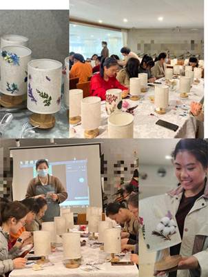 做。一盏古朴的棉麻小灯,粘上五颜六色的永生花,摇身就变成独一无二的别致作品。柳州市计量所的女职工们,齐聚一堂,欢声笑语,在专业老师的耐心指导下,用一朵朵彩花、一片片绿叶,精心打造成一件件精美用心的艺术品,充分地展示了女同胞富有创意的匠心和积极向上的精神风貌。“此次活动很有意义,既让我们学习了审美搭配技巧,又修养了身心,释放了工作压力,还能亲自动手打造我们温馨的家!”大家在欢乐的气氛中学到了新的技能,看着自己动手制作的作品,成就感爆棚。通过组织手工活动,搭建沟通交流的平台,让女职工暂时脱下工作服、放下案头文档、走出实验室,放松身心,提高了妇女的幸福感和归属感,强化凝聚力,绽放巾帼风采,助力计量事业的高质量发展作出更大的贡献。
