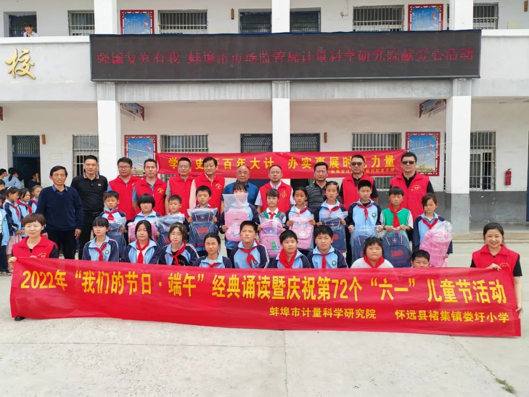 为贯彻落实《中共蚌埠市委 蚌埠市人民政府关于推进乡村振兴战略的实施意见》,充分发挥单位党组织对乡村振兴、教育振兴的助力作用。市计量科学研究院于“端午”“六一”两节来临之际,赴怀远县褚集镇娄圩小学开展了“我们的节日·端午”经典诵读暨庆祝第72个“六一”儿童节活动,提前陪孩子们度过了一个暖心又快乐的“儿童节”。