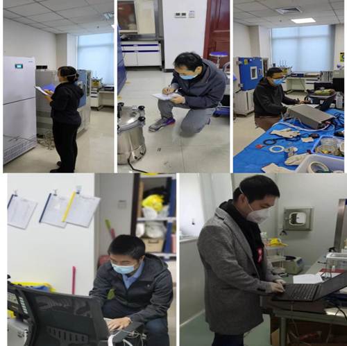 为减少不必要环境接触,确保计量技术人员安全,他们在实验室过起了“集体生活”,近500台医疗器械检验设备正按计划进行“计量体检”。口罩之下的“他们”在呼吸间,雾气刷白了眼镜,鬓角微湿,眼神坚定一如往昔。
