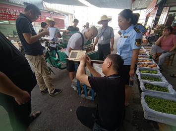 在集贸市场,市计量所检定人员按照检定规程逐一检查电子秤的安全性声明、计量法制标志和计量器具标识、铅封,采用标准砝码检查电子秤的称量误差等计量性能。对经检定合格的电子秤,现场粘贴合格证并打铅封;同时,向商户宣传计量法律法规,指导如何正确使用合格的电子秤并定期申请强制检定,提醒消费者在购买商品时,应选择使用合格电子秤的商家,必要时可在市场中设置的公平秤上复秤。