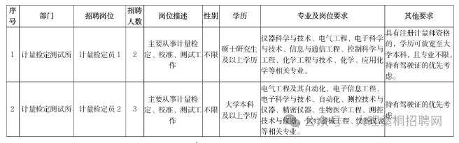 招聘岗位及招聘条件详见《大理白族自治州检验检测院2025年(第二批)编外聘用人员招聘计划表》(详见附件1)。