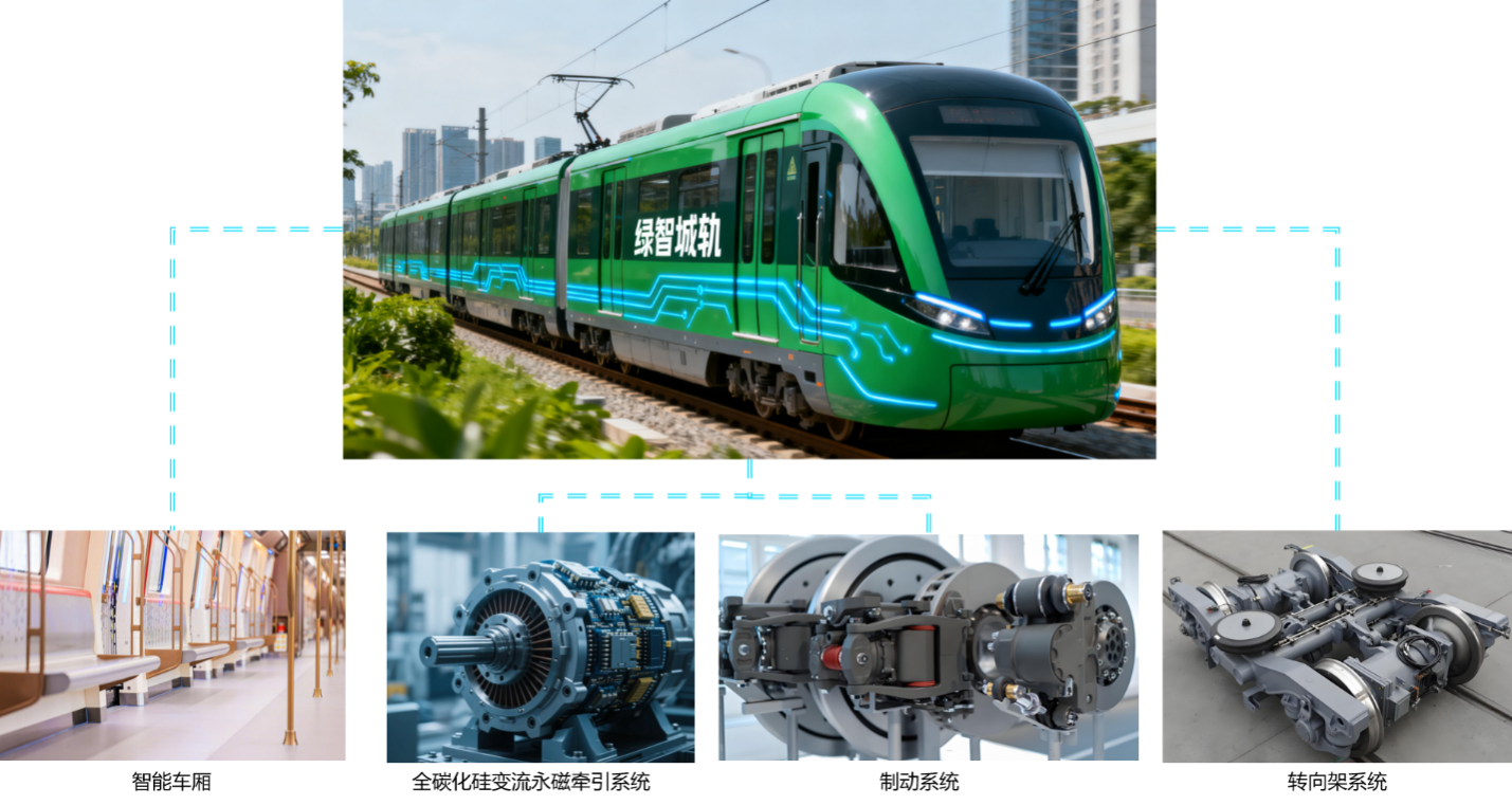 该绿智城轨车辆集成轴箱内置式架悬直驱转向架、全碳化硅变流永磁牵引、电机械制动等38项前沿技术,具备安全可靠、智慧先进、绿色节能、舒适便捷等特质,是我国低碳环保型城轨装备的标杆产品,对推动轨道交通自主创新与产业规范化发展具有重要示范意义。