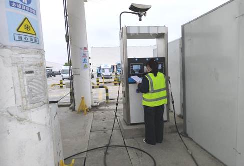技术人员正在开展加气机检校工作