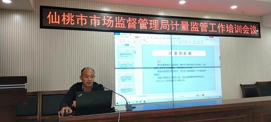 近日,受仙桃市市场监管局邀请,湖北省计量院仙桃分院选派两名技术骨干,前往仙桃市市场监管局作“计量基础”专题讲座。仙桃市市场监管局计量科全体人员和全市19个基层监管所负责人参加讲座。仙桃市市场监管局局长黄永波出席讲座并作专题讲话。
