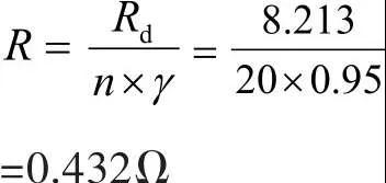 式中:Rd——一组离子接地系统的使用效果;R——n组离子接地系统使用后的效果;n——使用离子接地系统的组数;γ——利用系数,γ为0.95。