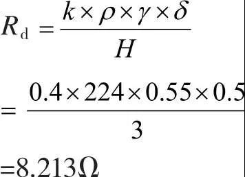 式中:Rd——电解离子接地系统的接地电阻;k——电解离子接地系统效率,为0.4;ρ——土壤电阻率(Ω·m);γ——降阻回填降阻率,为0.55;δ——电解离子接地系统的初始离子扩散半径,为0.5m;H——电解离子接地系统的长度,为3m。