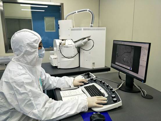 博士后工作站科研人员精确测量颗粒标准物质 王书升摄影