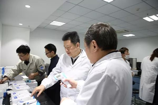 在热工所的红外辐射实验室,我院检定人员正在检定仪征计量所从疾控中心收集而来的五十多台红外耳温计和额温计。冯新南向检定人员仔细询问了检定流程、工作时间量,并了解我院相关仪器设备和人员调配情况。他指出,各部门要为疫情防控计量检定任务做好充分的软硬件准备,保证各项检定工作有序进行。他向坚守工作岗位的检定人员表示感谢,叮嘱大家在疫情防控保障的同时也要做好自我保护。