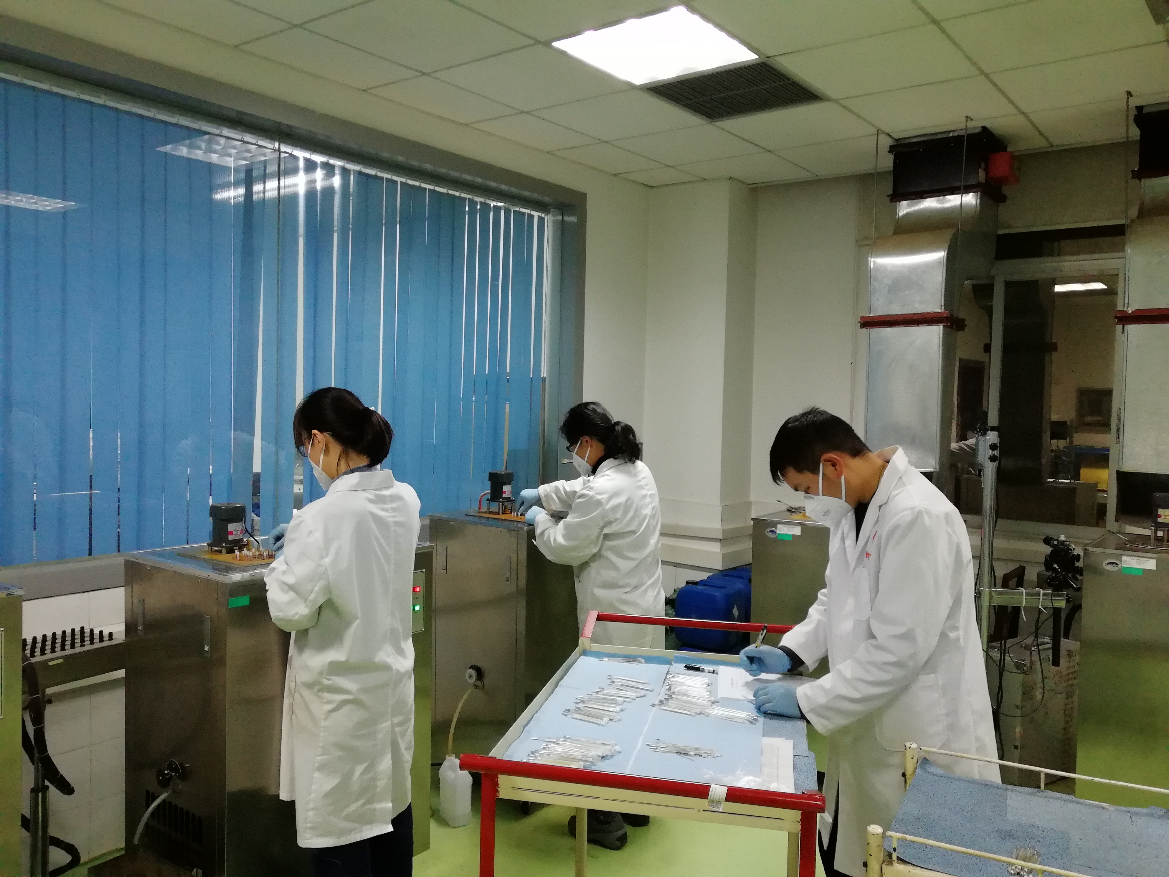 检测人员迅速开启检测设备,立即预热升温,对体温计进行全面消毒处理。准备工作就绪后,即刻投入到紧张的检测工作中。经过连夜加班加点的检测,工作人员高效、准确地完成了184支体温计的检测任务,以确保疗养院能在第一时间取回体温计并用于疫情防控工作。
