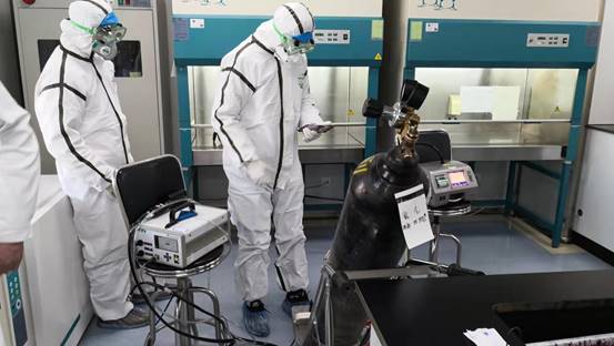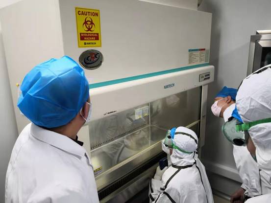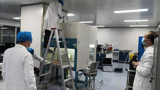 生物安全柜主要在新型冠状病毒核酸检测中起到防止病毒扩散和保护检验人员的重要作用,是病毒检测的第一道安全防线。由于用途特殊,技术要求较高,并且对人身存在一定的安全风险,所以检测过程必须小心谨慎,精准细致,稍有差池就可能造成病毒感染等危害。院小组成员全程穿着密不透气的防护服,在不能喝水等严苛条件下,爬低上高、不放过任何一个检测细节,全身湿透、坚持一丝不苟地核实每个检测数据,从中午12时一直工作到晚上9时,认真完成该院医学检验科申请检测的所有生物安全柜,并对日常计量维护等工作提供了详细的技术指导。为确保医院早日拿到报告开展工作,援建小组次日早晨6时出发,晚上7时回到实验室,连夜加班处理数据并完成了检验报告。