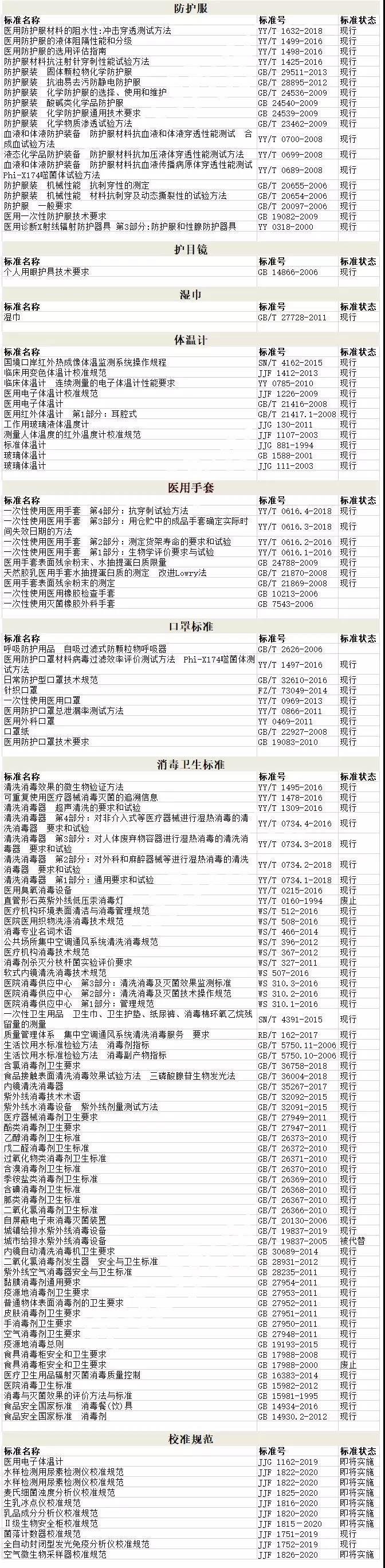 疫情防控是一场保卫人民群众生命安全和身体健康的严峻斗争,目前正到了打攻坚战和阻击战的关键时刻。为响应国家号召,全力以赴打赢疫情防控的阻击战,中国标准在线服务网特梳理出一批医护相关国内标准,标准范围覆盖口罩、防护服、护目镜、医用手套、消毒剂、湿巾、体温计等各类防护用品,在中国标准在线服务网疫情防控标准专栏中发布,供社会大众免费查阅。