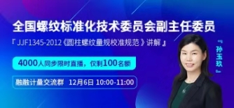 如果您想学习螺纹基础知识,理解JJF1345-2012《圆柱螺纹量规校准规范》,小编诚挚地邀请你本周五(12月6日)上午10:00-11:00来听第二次计量线上免费公开课。